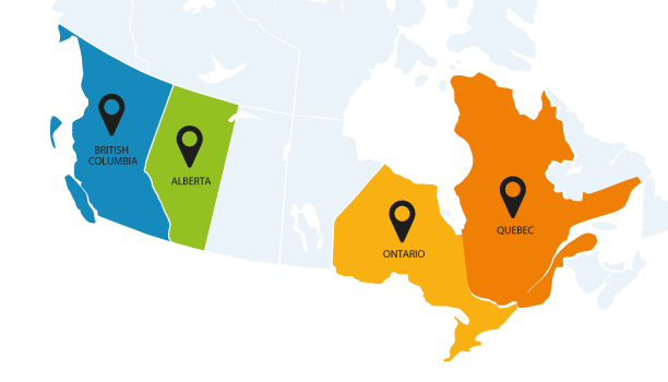 Los colegios están ubicados en 4 provincias canadienses: Alberta, British Columbia, Ontario y Québec. Pueden estar ubicados en pueblos, ciudades medianas y áreas metropolitanas de ciudades o en grandes ciudades, los precios variarán dependiendo de la ubicación.